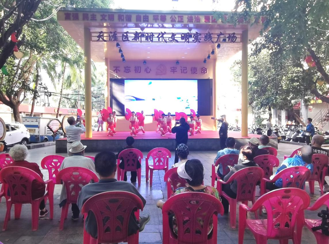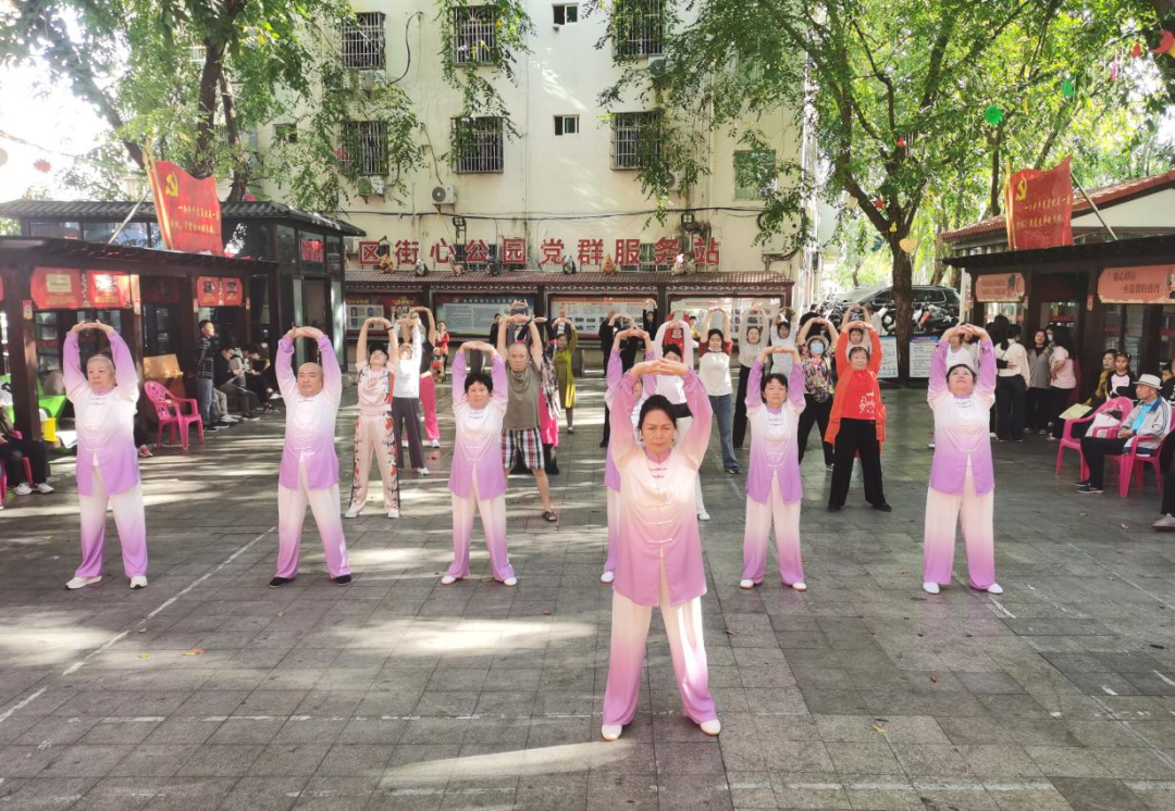 1月9日上午,市老年大学组织老年健身类专业和健身气功八段锦短期兴趣班的银发学员,走进天涯区金鸡岭路社区,在社区的街心公园开展太极拳、扇和八段锦等教学成果展示表演,并向社区居民现场讲解、教授八段锦。老年学员在轻柔舒缓的太极乐曲中翩翩起“武”,一招一式中彰显刚柔并济之美,在起承转合间演绎轻盈灵动之韵。在晨光中,社区居民们也跟随学员们展臂抬腿,感受传统养生运动的魅力。