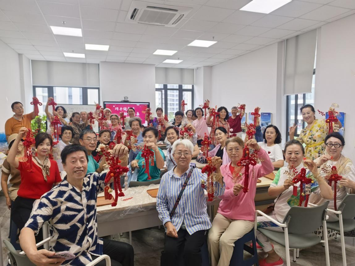在天涯区中国结活动现场,同样暖意洋溢。手工老师首先向老同志们讲述了中国结的历史与吉祥文化寓意,接着细致示范了中国结的编织方法以及挂件的装饰技巧。老同志们便执绳上手,细心编织。红绳在手指间缠绕、穿梭,仿佛将往昔的峥嵘岁月与如今的静好时光都编了进去。完成主体结形后,大家又精心挑选小挂饰进行点缀、粘贴,一个个独一无二、寓意深长的中国结陆续诞生。那抹鲜艳的中国红,宛如一颗颗跃动的初心,串联起对家国的深情、对时代的礼赞,也织就了一幅温馨和谐的银龄生活画卷。