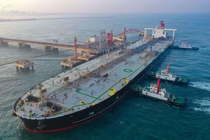 ▲2025年12月18日,一艘装载着17.9万吨石化原辅料的外籍船舶正在泊入国投洋浦油储码头30万吨级原油泊位,这是海南自贸港正式启动全岛封关后的第一批“零关税”通关货物。新华社记者郭程摄