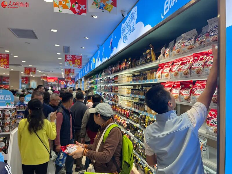▲2月11日,海南首批5家日用消费品免税店开业,市民在家门口选购免税商品。人民网记者李学山摄
