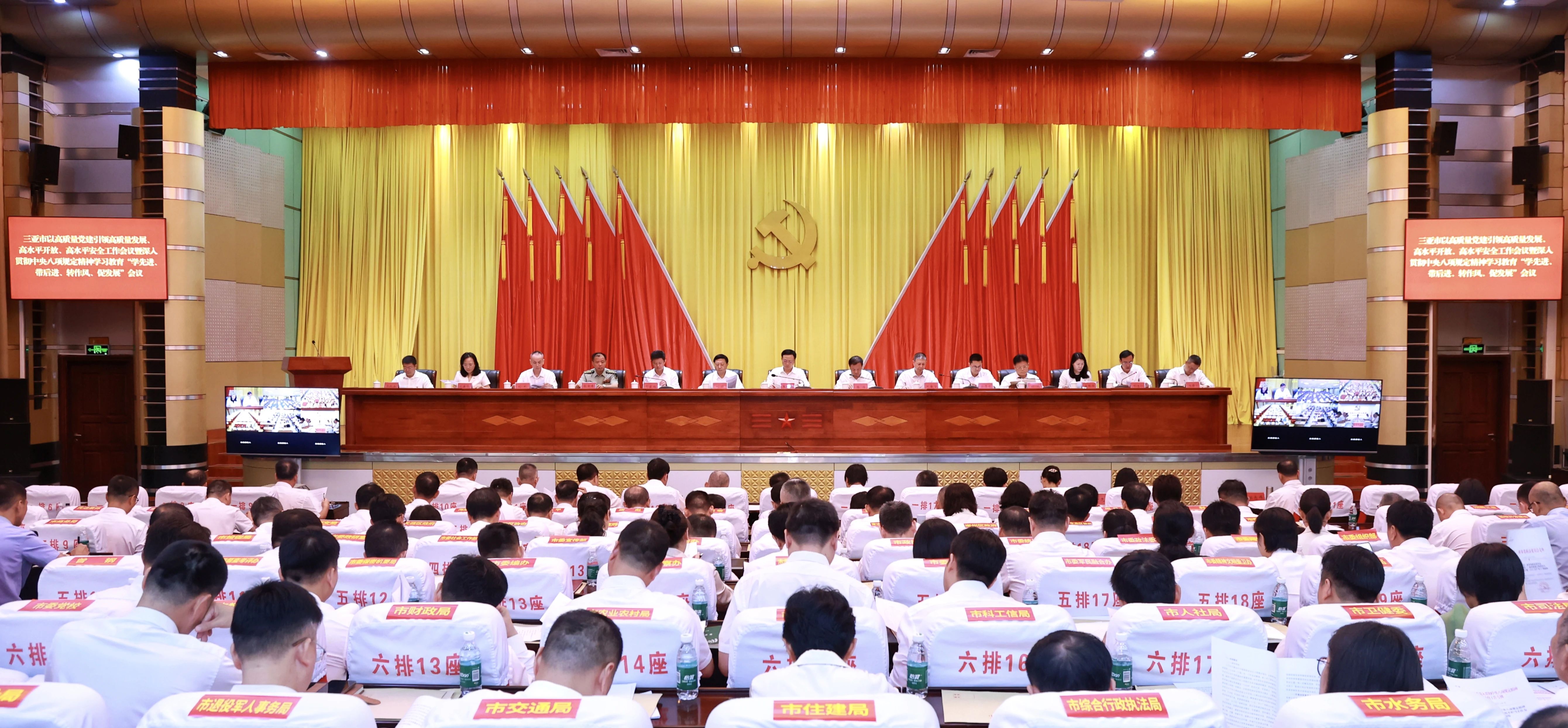 7月3日上午,三亚市以高质量党建引领高质量发展、高水平开放、高水平安全工作现场会暨深入贯彻中央八项规定精神学习教育“学先进、带后进、转作风、促发展”会议召开。